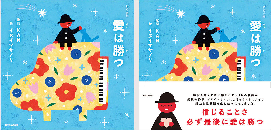 "歌詞(うた)の本棚"は、楽曲の歌詞に着目し、人気のイラストレーターが自らのフィルターを通して、その世界観を絵本として再構築するプロジェクト。第2弾はシンガーソングライター、KANの代表曲で、1990年に大ヒットした「愛は勝つ」をとり上げます。普遍的な愛を想起させる歌詞が、気鋭のイラストレーター、イヌイマサノリの絵により、大人から子どもまで楽しめる、心温まる内容に仕上がりました。巻末には本曲のコード譜を掲載しているので、歌いながら楽しむこともできる1冊になっています。