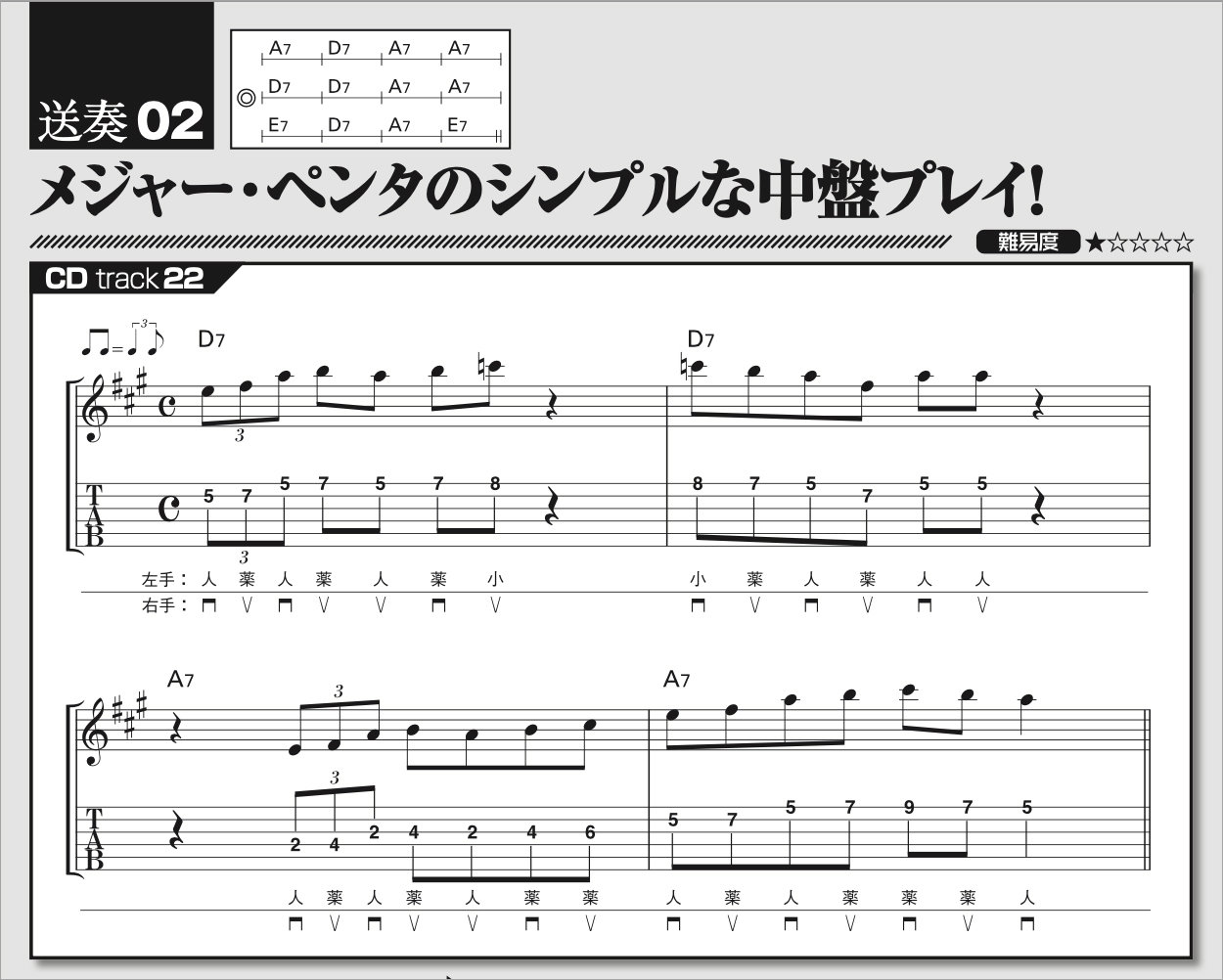登場する奏法は基本的なものを中心にしているので、初心者のレベルアップのための教本としても最適です。