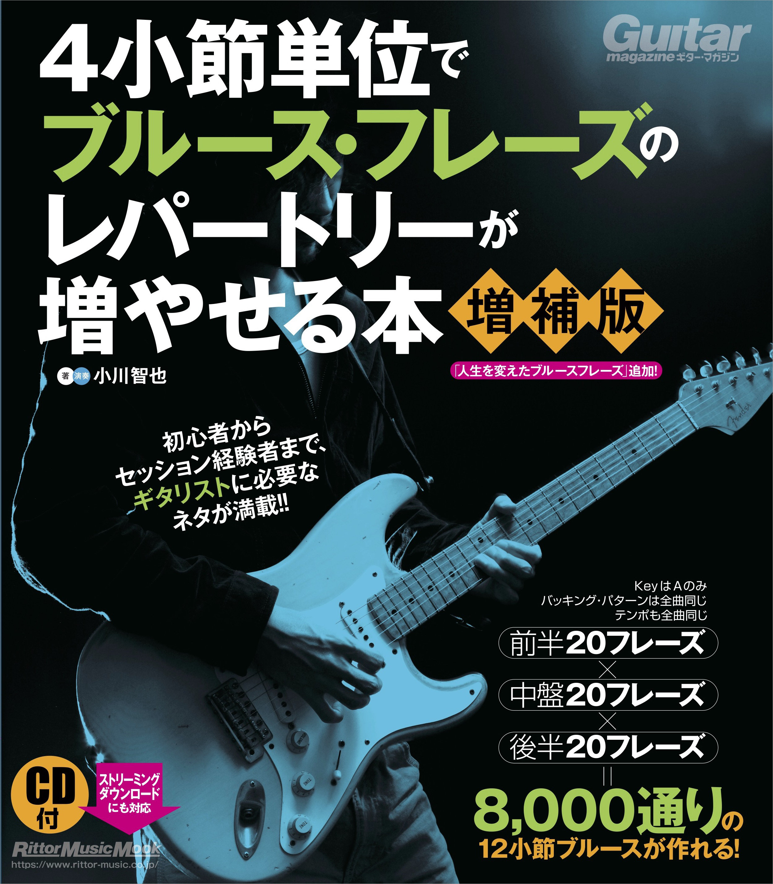 伝説のムックが「人生を変えたブルースフレーズ」を追加した増補版として新登場! 4小節ずつの組み合わせで8000通り以上の12小節ブルース・ソロが作れる!