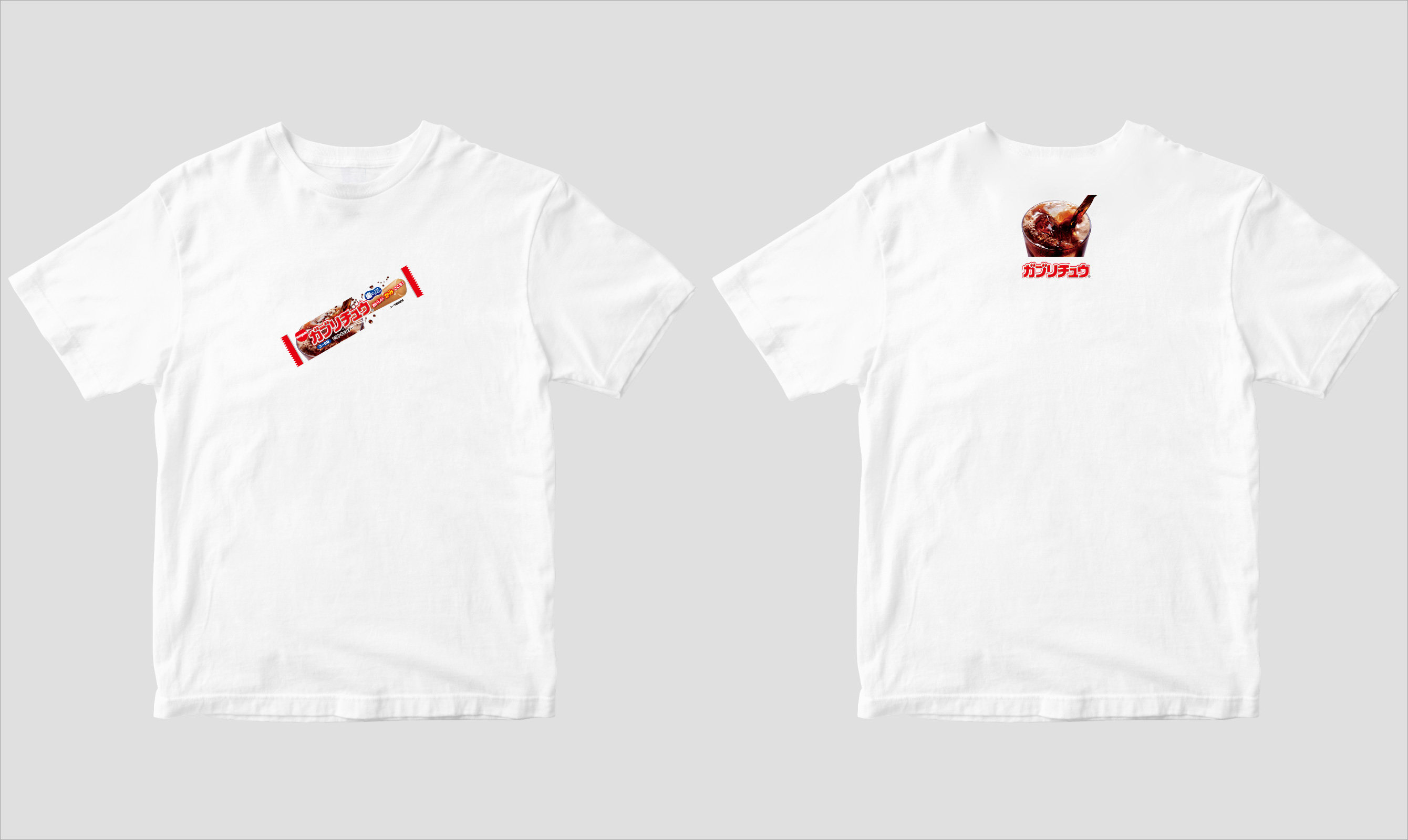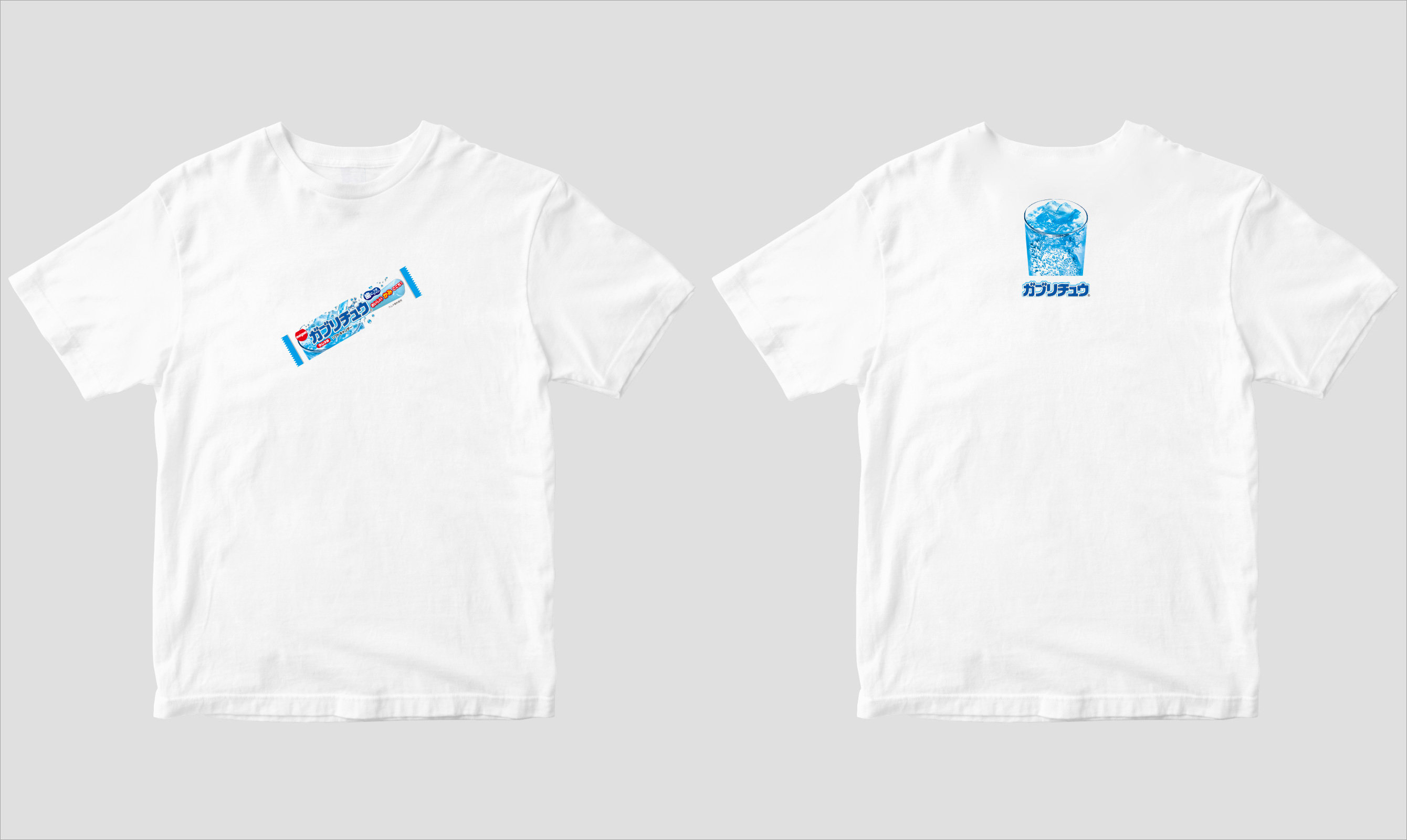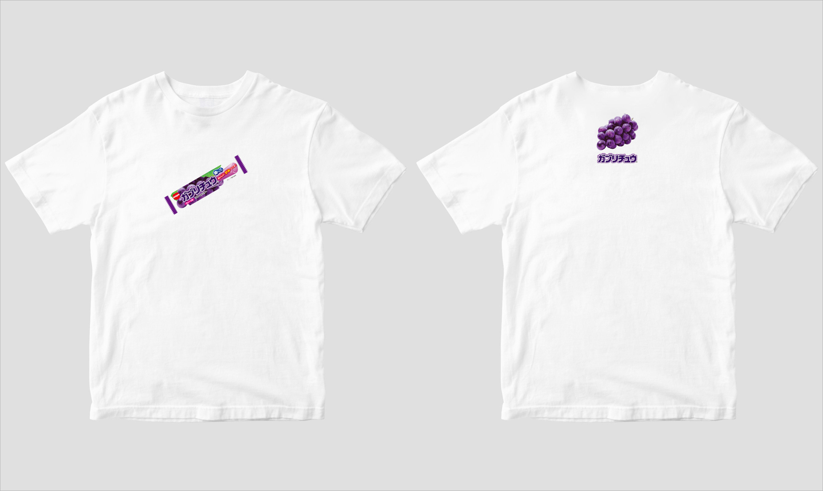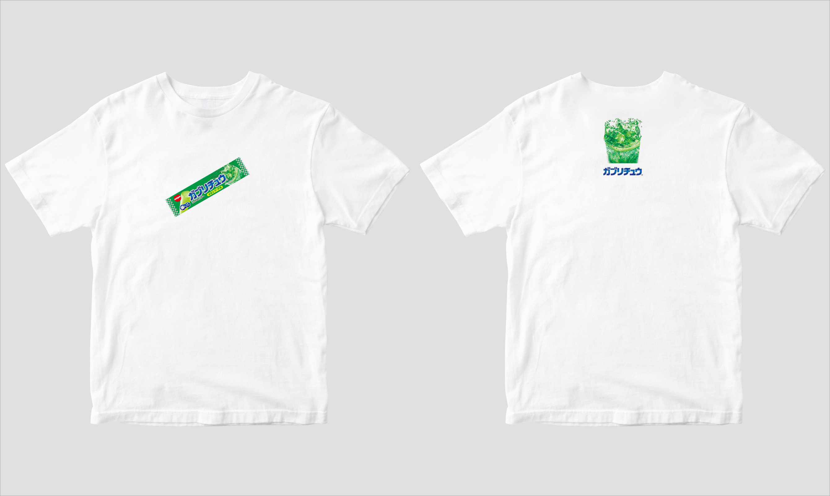 『ガブリチュウTシャツ』『ガブリチュウロンT』は、ガブリチュウの人気フレイバー『濃いガブリチュウもも味』『カラフルなガブリチュウ』『グレープ味』『ラムネ味』『コーラ味』『メロンソーダ味』の6種類がモチーフ。フロントには商品のパッケージを、バックにはフレイバーに合わせたフルーツやジュース、ロゴをあしらっています。どんなファッションにも合わせやすいシンプルなデザインに仕上がっているので、年齢や性別を問わずにご着用いただけます。