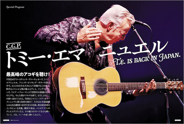 表紙巻頭の特集には、アコギの神様とも評されるトミー・エマニュエルが降臨。フィンガーピッキング・ギターの森の中で、ひときわ巨大な大木として君臨するこの男は、時代もジャンルも飛び越えるプレイ、ソングライティング、ライブ・パフォーマンスで世界中の視線を釘付けにしています。そんな彼がコロナを経て、ひさしぶりに日本に訪れました。今回はそのジャパン・ツアー、ワークショップに潜入取材を敢行! そのほか共演経験もある住出勝則×KOYUKIの対談、渡辺香津美のインタビューも実施。機材や奏法、バイオグラフィやディスコグラフィなど、その魅力のすべてをひも解いていきます。