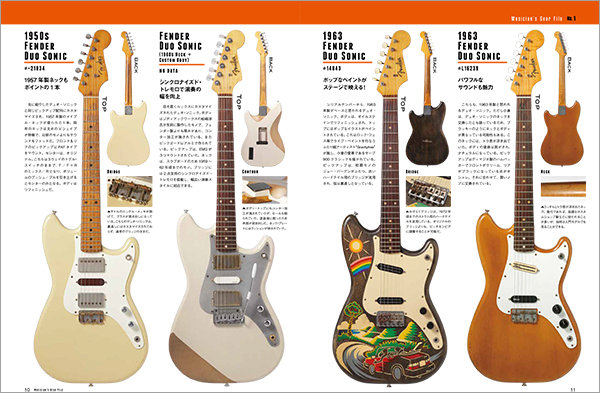 〜エリック・クラプトンのブラッキー、スティヴィー・レイ・ヴォーンのNo.1、ライ・クーダーのクーダーキャスター、ロビー・ロバートソンのブロンズド、デヴィッド・ギルモアのザ・ブラック・ストラト、キース・リチャーズのミカウバー、ジェフ・ベックのテレギブ、コーネル・デュプリーのデュプリージャムNo.1、アンディ・サマーズのハイブリッド・テレキャスター、ジョニー・マーのジャガー、カート・コバーンのジャガー、他