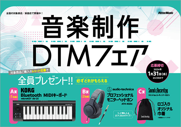 対象商品ご購入のレシート応募で全員プレゼント! 「音楽制作DTMフェア」が全国の楽器店、書店にてスタート。