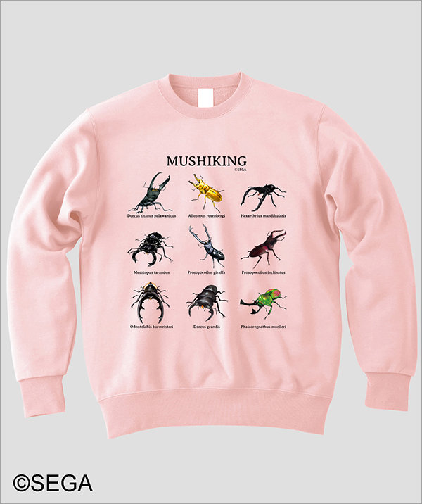 ↑『ムシキングスウェット 9種の甲虫 クワガタVer.』ライトピンク