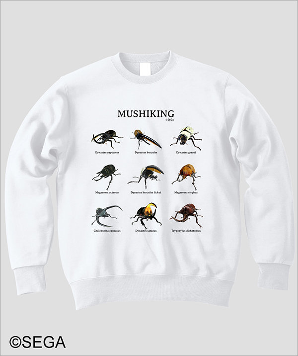 ↑『ムシキングスウェット 9種の甲虫 カブトムシVer.』ホワイト