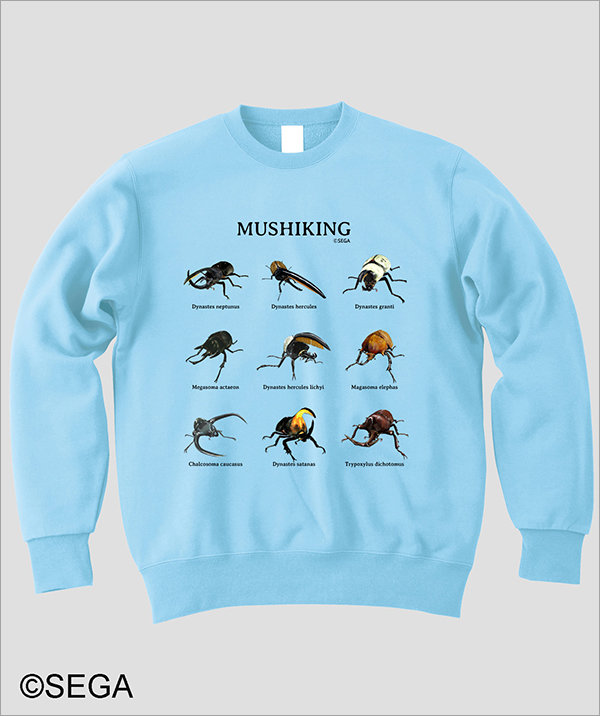 ↑『ムシキングスウェット 9種の甲虫 カブトムシVer.』ライトブルー