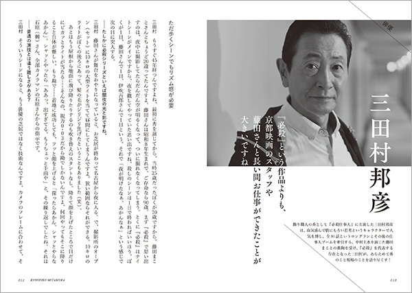 また『異聞』に続き今回も時代劇研究家の春日太一氏が秘蔵のインタビューを提供、仕事人シリーズを代表する脚本家・吉田剛の貴重な発言が収録されているのも大きなトピックです。撮影・監督の石原興ほか各パートの職人が集結し、本音満載の京都映画座談会もふたたび開催、さらには中村主水を演じた藤田まことの長女・原田敬子が亡き父を語ります。480ページもの大ボリュームで展開される、めくるめくような制作秘話の数々をぜひご堪能ください。