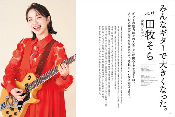 女優として活躍する他、NHK『有吉のお金発見 突撃!カネオくん』の日直アシスタントとして人気の田牧そらが表紙・巻頭インタビューで登場。フォロワー5.8万人を抱えるインスタグラムに、ときどき投稿されるギターの弾き語り動画が気になっていた人も多いだろう。ギターについて、音楽について、演技についてたっぷり聞いた。