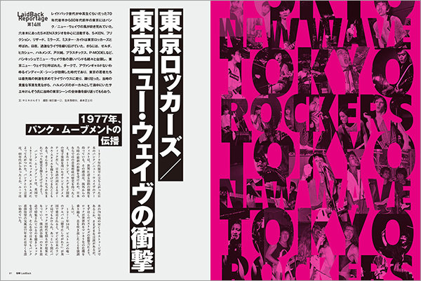 レイドバック世代が中高生ぐらいだった70年代後半から80年代前半の東京にはパンク/ニュー・ウェイヴの風が吹き荒れていた。六本木にあったS-KENスタジオを中心に活動する、S-KEN、フリクション、リザード、ミラーズ、ミスター・カイトは東京ロッカーズと呼ばれ、日夜、過激なライブを繰り広げていた。さらには、ゼルダ、ヒカシュー、ハルメンズ、戸川純、プラスチックス、P-MODELなど、パンキッシュでニュー・ウェイヴ色の濃いバンドも続々と台頭し、東京ニュー・ウェイヴと呼ばれた。ダークで、アヴァンギャルドないわゆるインディーズ・シーンが勃興した時代であり、東京の若者たちは最先端の刺激を求めてライブハウスに走り、踊り狂った。当時の貴重な写真を見ながら、ハルメンズのボーカルとして渦中にいたサエキけんぞう氏に当時の東京シーンの全体像を振り返ってもらおう。