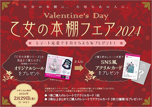 『Valentine's Day 乙女の本棚フェア2024』が全国の書店でスタート。 今年は、レシート応募で全員もらえるWプレゼント!