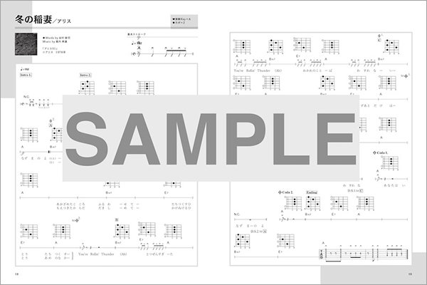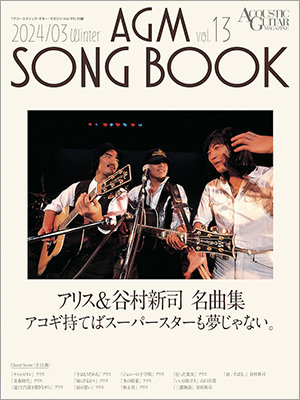 アコギ1本で歌えるように歌詞とコード譜をダイアグラム付きで掲載する好評の付録歌本『AGM SONG BOOK Vol.13』は、もちろんアリス&谷村新司の歴史的名曲群を収録。「冬の稲妻」、「遠くで汽笛を聞きながら」、「昴-すばる-」など、シンプルなコード進行ながら耳に残りやすいキャッチーな楽曲の数々は、多くのシンガーソングライターにとって最適な参考書となることでしょう。ぜひチンペイさんに想いを馳せながらご自身で弾き語ってみてください。