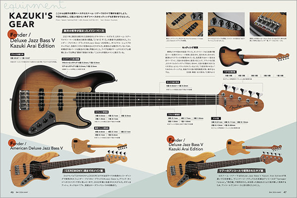 新作やツアーの話題はもちろん、ドラマーの勢喜遊とのリズム体対談、フロントマンの常田大希への取材、愛器紹介、さらには新井が全キャリアを語りおろしたロング・インタビューも注目のポイント。ここでは君島大空 合奏形態からNewJeansとの共演まで、数々のセッション・ワークスを振り返りながらベース人生を赤裸々に語ってもらっています。
