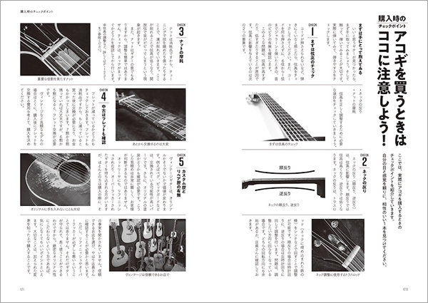 本書では、店主がそのキャリアで実際に扱ってきたアコースティック・ギターの中から、還暦オヤジたちにぜひお勧めしたい逸品をピックアップ。あこがれのマーティンはもちろん、思い出のヤマハやモーリスなどの日本製、懐かしのオベーション、フォーク・ファン垂涎のテリーズテリーなどなど、ビンテージから現行製品までを含めた59機種を、オットリーヤ独自の目線でじっくりと解説しています。さらに「主要アコギメーカーとその歴史」、「メンテナンスと保管」、「購入時のチェックポイント」など、アコギ弾きなら知っておきたい基礎知識についても、わかりやすくレクチャーします。