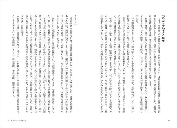 本書は、2023年2月14日から同年4月29日まで「西日本新聞」に連載された回想録「ボクのハートフルライフ」(聞き手:壇知里)に加筆・修正を施し、さらには自選のコミック作品やイラストレーション作品も併録したものです。幼少期の思い出から、絵画に目覚めた頃の逸話、損保会社でのさまざまな経験、そしてもちろん「ハートカクテル」を始めとしたわたせ作品の創作秘話などが明かされ、実際の作品を見ることもできるので、「ことば」と「絵」でわたせワールドを堪能可能となっています。