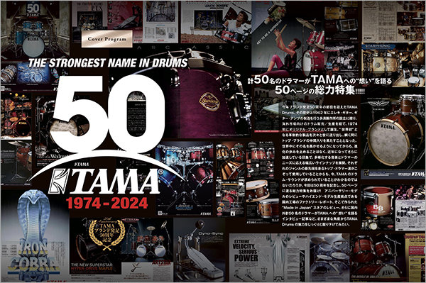 7月号の目玉となるのは、今年ブランド発足50周年を迎えた国内ドラム・メーカー、TAMA Drumsの総力特集。エレキ・ギターやギター・アンプを製造していた多満製作所での海外市場向けドラム生産/販売を経て1974年にオリジナル・ブランドとして誕生。発足から現在に至るまで、革新的な製品を次々と世に送り出し、ジャズやロック、メタル、コンサート製品など、ジャンルを問わず国内外のトップ・アーティストに支持され、世界的ドラム・メーカーへと成長。