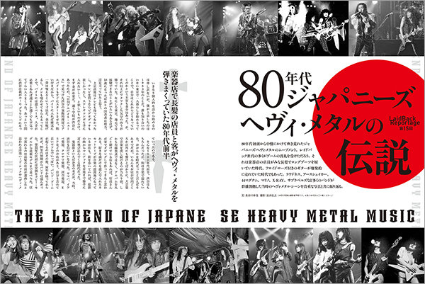 80年代初頭から中盤にかけて吹き荒れたジャパニーズ・ヘヴィ・メタルのムーブメント。レイドバック世代の多くがその洗礼を受けただろう。それは楽器店の店員がみな長髪で黒いブーツを履いていた時代、フロイド・ローズ付きのギターが爆発的に売れていた時代でもあった。ラウドネス、アースシェイカー、44マグナム、マリノ、X-RAY、サブラベルズなど多くのバンドが群雄割拠した当時のヘヴィ・メタル・シーンを貴重な写真と共に振り返る。
