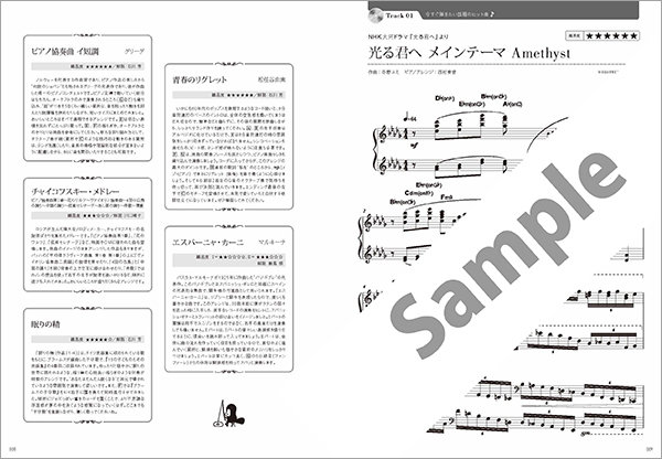 【付録CD】は全15曲のピアノ模範演奏を収録。芸能界特技王決定戦『TEPPEN』2023年夏で優勝を飾った、ピアニスト・なのはなさんに「HEART BEAT」を生演奏していただきました。リスニング用としても十分楽しめる豪華CDです。