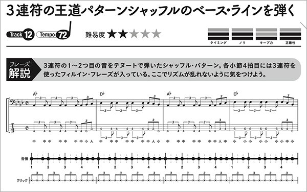 「クリック」に合わせた多様なエクササイズでリズム感が確実に向上する!! 究極のベース教本『ベーシストのためのリズム強化本』が発売!