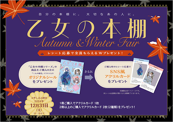 『乙女の本棚Autumn & Winter Fair』が全国の書店でスタート。 レシート応募で全員もらえるWプレゼント!