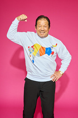 藤波辰爾コメント「夏に発売したTシャツが大好評で、プロレス会場やイベント会場で着ている人をよく見かけて嬉しいです。ありがとうございます! 僕も普段から着ていますよ。このマッチョ・ドラゴンスウェット&Tシャツを着て、みんなでドラゴンパワーでいきましょう!」