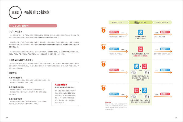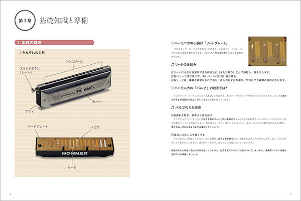本書は、そのクロマチック・ハーモニカを使った珠玉のナンバーを15曲そろえた楽譜集と、初心者でも取り組みやすい練習方法などの解説がセットになっています。