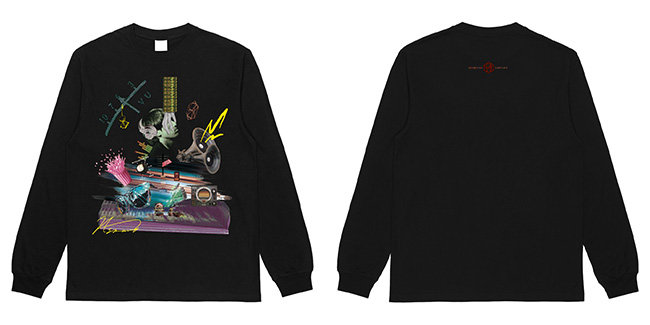 加えて、ECサイト「T-OD」では本書の発売を記念して、『Hiroyuki SAWANO Tシャツ』『Hiroyuki SAWANO ロンT』も発売。4月28日より予約受注を開始します。デザインは、澤野作品の作詞を多数手がけているcAnON.によるもので、澤野のフェイバリットなアレコレをスタイリッシュにコラージュ。『澤野弘之 20th Anniversary Book Limited Edition』とのセット販売も用意されているので、ぜひチェックしてみてください。