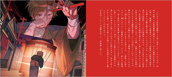 想像力を掻き立て物語を深く考えてしまうようなイラストをコンセプトに制作を行う。書籍の表紙、挿絵、MVイラスト、キャラクターデザイン、CDジャケットなどを担当している。