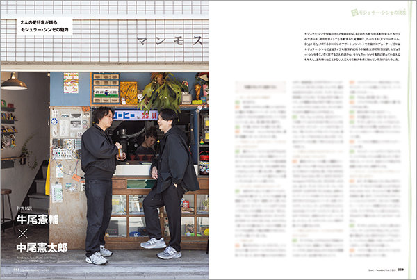 表紙は劇伴作曲家としても確固たる地位を築いている牛尾憲輔。往年のものから最新の製品まで、所有するモジュラー・シンセの数々を披露するとともに、モジュラー・シンセの魅力を大いに語ってくれました。牛尾と中尾憲太郎の対談のほか、日本のモジュラー・シンセ・シーンを牽引するHATAKENをはじめ8組のプロが愛用システムを公開。長きにわたりシーンを見てきた有識者4名による座談会、国内ガレージ・メーカー紹介など、圧倒的ボリュームでお届けします。そのほか、屋敷豪太と後藤正文(ASIAN KUNG-FU GENERATION)による"蔵スタジオ"対談や、朝日美穂、折坂悠太らのインタビューも収録します。