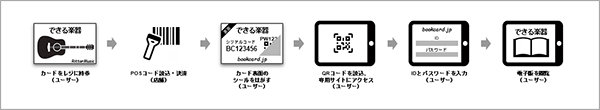 電子書籍を楽器店や書店にてカード形式で販売、ご購入者様(ユーザー)がパソコンやスマホで閲覧できるサービスを開始します。