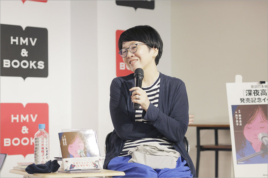 楽曲の歌詞に着目し、人気のイラストレーターが自らのフィルターを通してその世界観を絵本として再構築するプロジェクト、"歌詞(うた)の本棚"。その第4弾として2025年7月11日に発売されたのが『深夜高速』(リットーミュージック刊)だ。それから2日後の7月13日、渋谷のHMV&BOOKS SHIBUYAにて、作詞及び作曲をしたフラワーカンパニーズのボーカル・鈴木圭介と、イラストレーターの丹下京子による発売記念サイン会&トークショーが行われた。司会は音楽評論家のスージー鈴木。