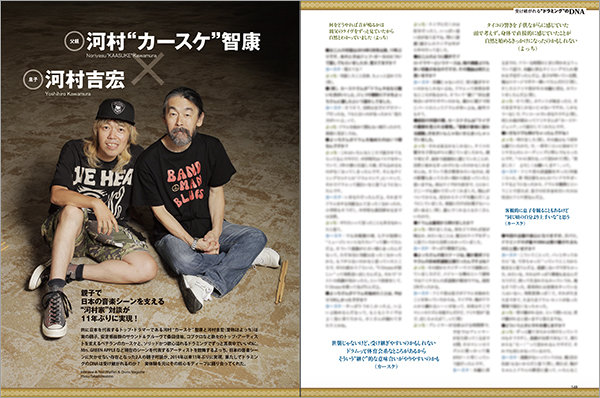 そして特別企画は、ジョン・ボーナムの息子=ジェイソン・ボーナムもまたプロ・ドラマーであることに着目し、「受け継がれる"ドラミング"のDNA」と題し、同じ道を歩む親子/家族に話を聞きました。ジェイソン・ボーナムのアーカイヴ・インタビューに始まり、11年ぶりとなる河村"カースケ"智康&河村吉宏による"河村家対談"、そして金子ノブアキ、SATOKO、青山英樹、マーカス・ギルモアに"ドラマーのDNAは受け継がれるのか"とストレートに疑問をぶつけてみました。