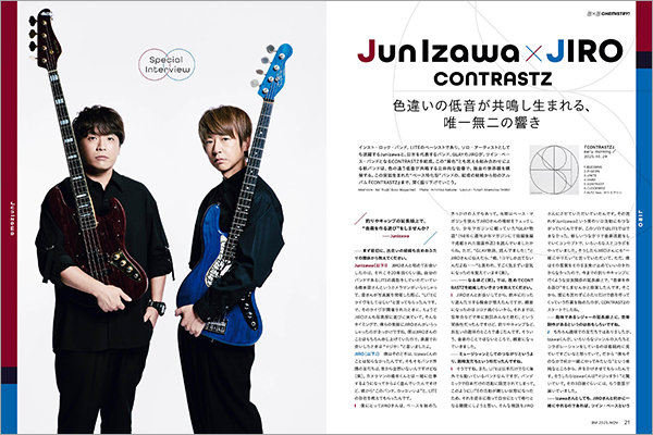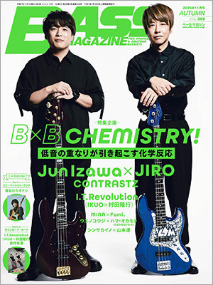 ベース・マガジン2025年11月号には、LITE・JunIzawaとGLAY・JIROによるツイン・ベース・バンド"CONTRASTZ"が表紙巻頭で登場!