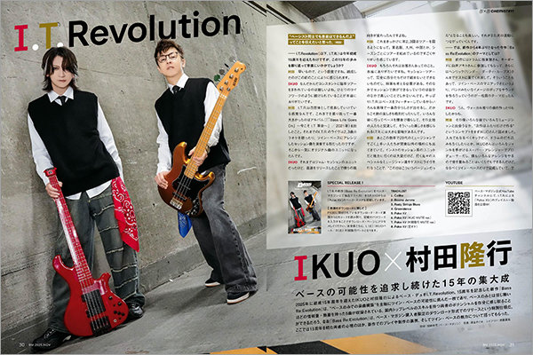 そして付録するDLカードを使えば、IKUO×村田隆行によるツイン・ベース・バンド、I.T.Revolutionの音源をダウンロード可能。本音源はベース・マガジンだけで聴くことができる、新作楽曲となっております。