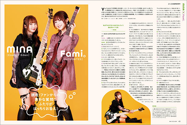 今、注目の女性ベーシスト、MINAとFami。が初対談!