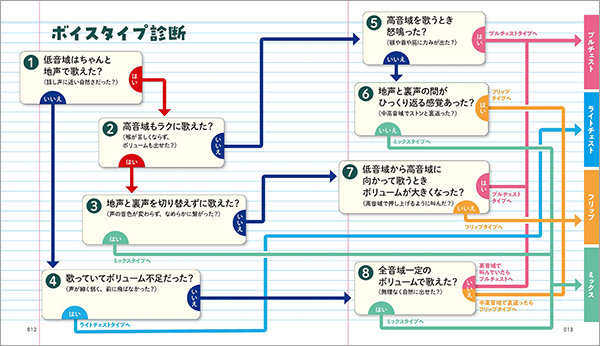 そんな二人のユニットである『BRIDGE』初の教則本は、まず読者のボイスタイプを診断することから始めます。