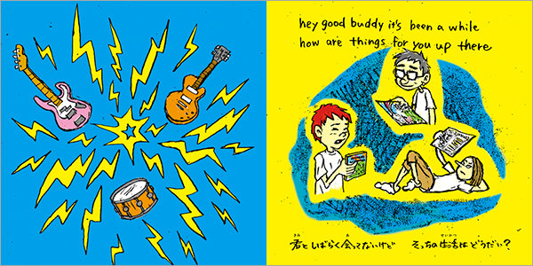 本書は今年、新ドラマーにZAXを迎えて再始動したHi-STANDARDが1999年に発表した楽曲「DEAR MY FRIEND」を絵本として再構築したもので、リットーミュージックが展開する"歌詞(うた)の本棚"シリーズの最新刊となります。イラストを手掛けるのは、同曲を収録し国内外で100万枚超のヒットを記録したアルバム『MAKING THE ROAD』のアートワークでも知られるDaisuke Hongolian。「DEAR MY FRIEND」の歌詞とリンクしながら、Hi-STANDARDのバンド・ヒストリーが名盤『MAKING THE ROAD』と最新ミニ・アルバム『Screaming Newborn Baby』の世界観で描かれた、感動的な作品に仕上がっています。