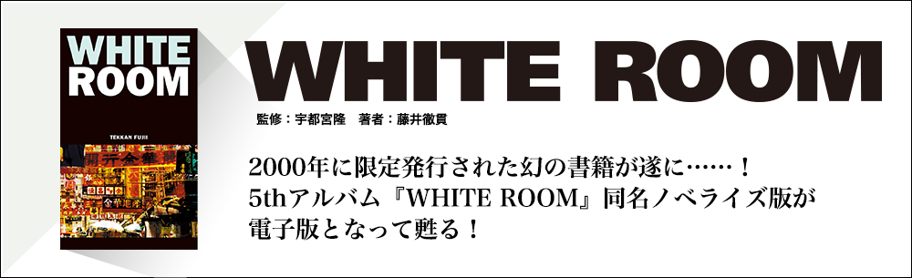 宇都宮隆と親交の深い音楽ジャーナリスト藤井徹貫が、2000年に発表された5thソロ・アルバム『WHITE ROOM』にインスパイアされて書き起こした同名の小説。「なんでもない夜のいつもと変わらぬ光景を君に捧げる」「ぼくらは限りある愛を分けあいながら生きている」など、印象的な7つのストーリーで構成されています。『WHITE ROOM』発表時に限定発行され、市販されることのなかったファン垂涎の貴重な作品であり、10年以上にわたって「幻の一冊」とされてきたこの小説が、電子版となって甦ります!