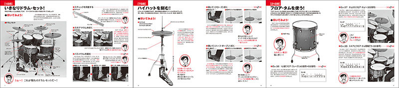満太郎 てっきり、最初は譜面を見たり打楽器の理論とかを勉強するもんだと思ってたんです。でも違いました。そういった、初心者にとってメンドーそうなことは全部後回し。もういきなりドラム・セットに座っていいよって言われて、スネアから順にバスドラ、ハイハット、タム、シンバルと叩いていったんです。