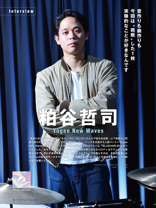 リズム&ドラム・マガジン5月号(3月25日発売)では、4人組シティ・ポップ・バンドYogee New Wavesの粕谷哲司(かすやてつし)が本誌初登場! 新作『BLUEHARLEM』に込めた想いや、ヴィンテージ好きな彼のこだわりが感じられる愛器について存分に語ってもらった。ここでは、そのインタビューの内容を抜粋してお届けしよう。