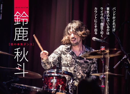 6/25(火)発売のリズム&ドラム・マガジン8月号には、楽器のベーシックなサウンドを生かした"人力ダンス・ミュージック"を持ち味に躍進を続けるロック・バンド=夜の本気ダンスのドラマー、鈴鹿秋斗が登場! ダンサブルな楽曲を豪快な4つ打ち主体のビートで盛り上げる彼に、新作『Fetish』のプレイで工夫したことや、夜ダンで鳴らすビートへのこだわりについて語ってもらった。ここでは、インタビューの一部をピックアップしてお届けしよう。