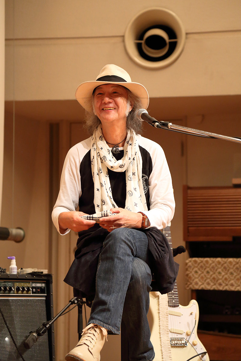 続いて、Charは「ひみつのアッコちゃん」のテーマ・ソング「すきすきソング」を例題に3コード・セッションの魅力を説き、最後は若き日のエリック・クラプトンの名演「クロスロード」のセッションで大団円。どこかパンキッシュな匂いがする、のんのバッキングに合わせ、即興で最高のギター・ソロを決めるChar。このセッションには、ギターの楽しさがすべて詰まっていた。幸運にもこの二人のセッションを見られたお客さんにとっては、一足早いクリスマス・プレゼントになったのではないだろうか。