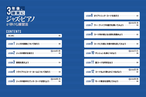 ベストセラーとなっている『3年後、確実にジャズ・ギターが弾ける練習法』のシリーズ本となる教則ムック。quasimodeのリーダーで、プロのジャズ・ピアニストとして活動する著者の平戸祐介が、これまでに培ったノウハウなどをもとに、ジャズ・ピアノ初心者が3年後にジャム・セッションをできるようになる練習法を解説します。"音程/コード・ネーム""セブンス・コードの仕組み"といった基礎から始めて、アドリブができる技術が身に付くようになるまで丁寧にレッスンを進めていきます。演奏についてはもちろん、ジャズという音楽についての知識も深まる一冊です。