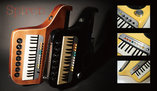 例えば、三味線シンセの「Shamitron」、弓で演奏できるベース・シンセ「Basstone BT-1」、謎のMIZUNO製シンセ「SuperSizerµ」、シンセ琴の最高峰「曙」、教育用リズム・マシン「School Rythmer」などなど、恐らく多くの方が聞き覚えのないような楽器ばかり、130種以上も掲載されています。これらの珍電子楽器の多くは、未来への夢を凝縮したようなハイセンスなデザインを身にまとい、合理性よりも理想を追求した機能を持っているのが特徴。その愛らしい姿は見ているだけでワクワクしてきます。中には電子ではなく"電気"楽器もありますが、それらの掲載理由も、独特のデザインと個性的な機能を持っているからにほかなりません。