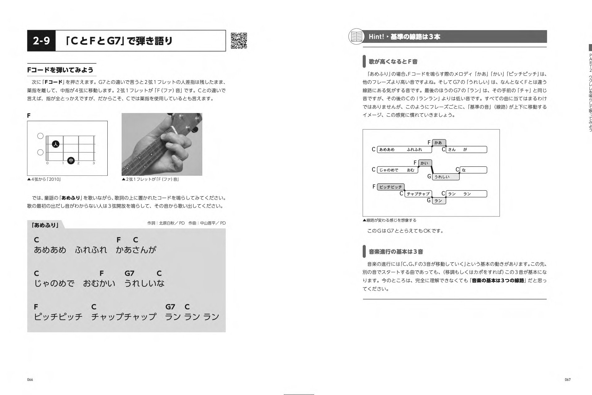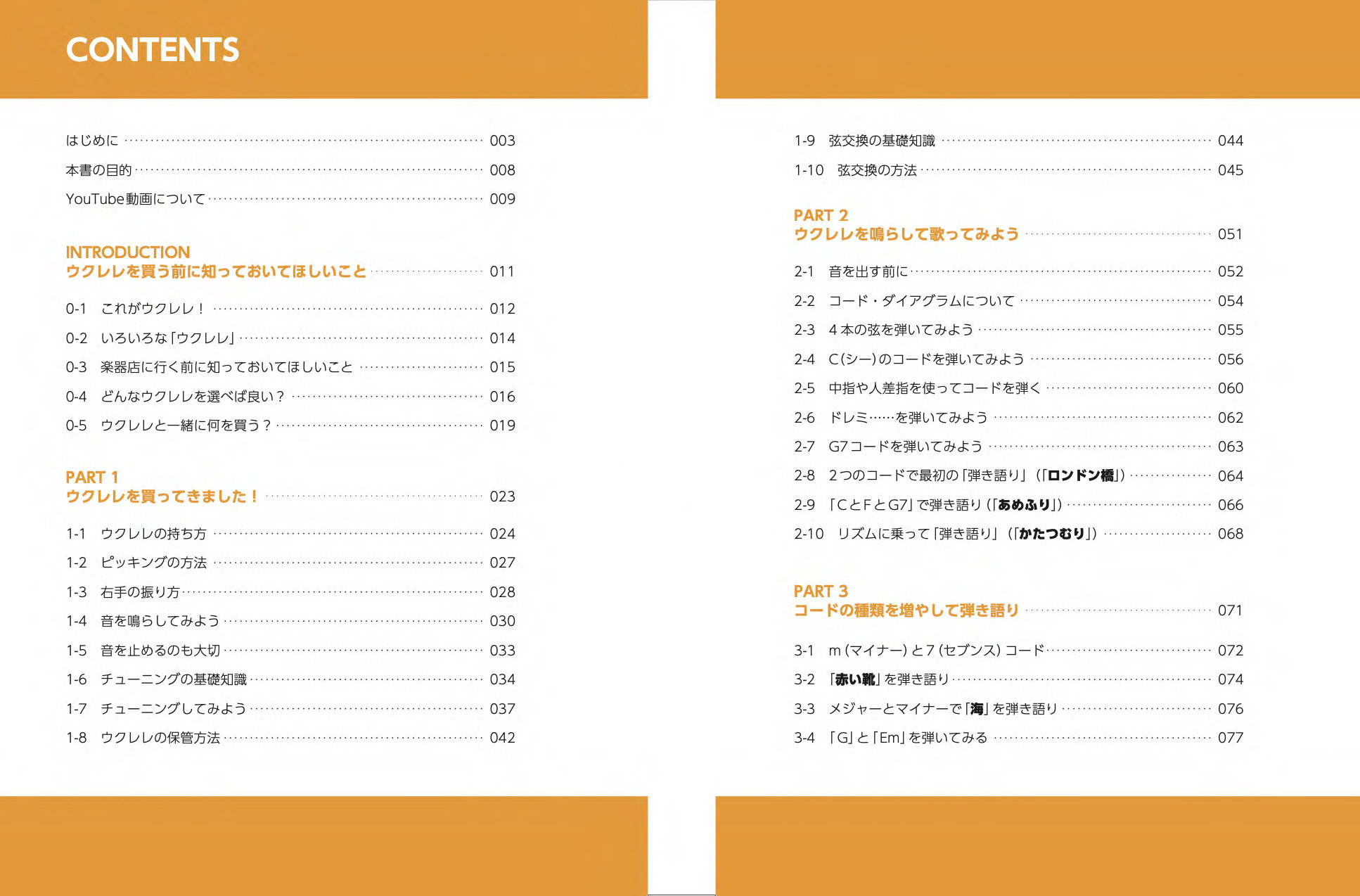 弾きながら歌うことが本書のメイン・テーマではありますが、いずれソロ・ウクレレを弾きたいという人も避けては通れない事柄を盛り込んでいるので、すべてのウクレレ入門者はぜひ手にとってもらいたいです。