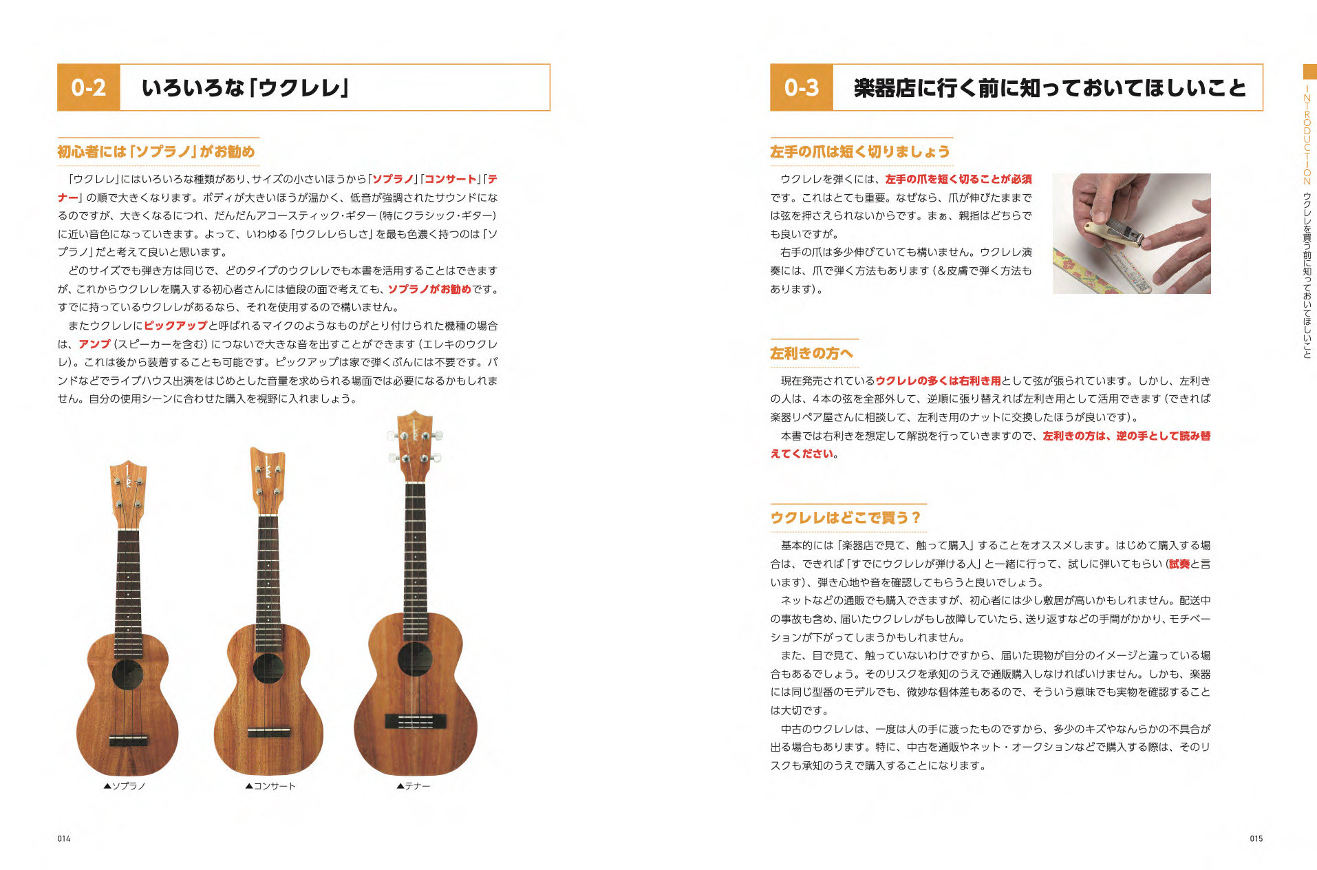 ウクレレを買ったばかり、もしくはこれから買おうとしている方が知っておきたいウクレレに関する事柄を順序立てて説明している入門書です。最初は2つほどコード(和音)を覚えて、みんなが知っている童謡の弾き語りに挑戦し、そこから少しずつコードのバリエーションを増やしていきます。通常はここでつまずく方も多いのですが、本書では押さえ方が似ているコードから解説するなど、無理なく進むので、"気がついたらJポップの有名曲が弾けていた!"となるのがポイント。また模範演奏をYouTubeにアップしているため、わからないと思ったらすぐに動画を確認できます。