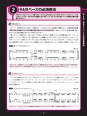 ジェームス・ジェマーソンやチャック・レイニーといったR&B の達人14人の名演をモチーフにした譜例解説にページを割いた他、R&B演奏の基礎知識、歴史的な演奏スタイルの特徴なども紹介しています。