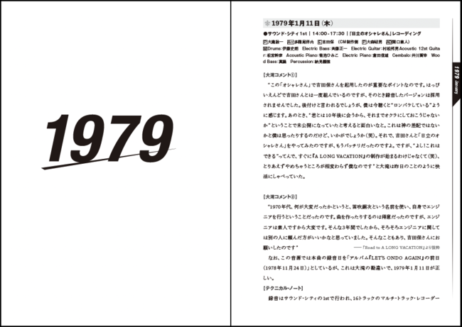 ところで、本書シリーズは“Vol.1”は存在せず、大滝さんの1979~1982年までを記録したこの“Vol.2”のみとなります。1978年以前と言えば、はっぴいえんど後、大滝さんが“福生45スタジオ”で自らレコーディングしていた時期ですね。果たして本シリーズはVol.2以外も出版していけるのか!?……そんなオトナの事情も踏まえ、本書をぜひともよろしくお願いします!