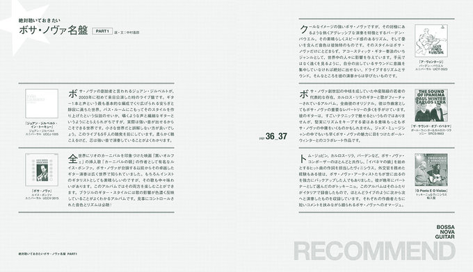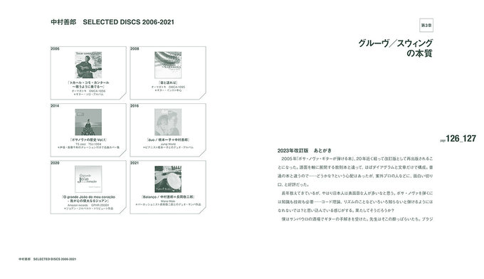 2005年初版『ボサ・ノヴァ・ギターが弾ける本』の改訂版。"日本のジョアン・ジルベルト"とも評されるアーティスト、中村善郎によるボサ・ノヴァ・ギター教則本で、五線譜は一切登場せず、コードの押さえ方が一瞬でわかるダイアグラムとリズム譜だけで構成。平易に語りかける文章と大きな文字でサクサクと読み進められる。小難しい理論は一切ナシで、楽しくボサ・ノヴァ体験ができることが売り。スキャット(鼻歌)も入るので弾き語りにも対応。初版はCD付きだったが、改訂版ではストリーミング&ダウンロード形式に変更。改定要素は、この教則のもとになった中村善郎が本場ブラジルで学んだ体験談/グルーヴの本質を収録。