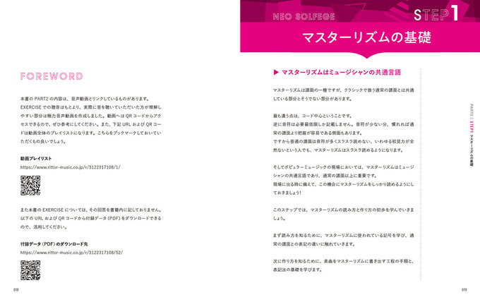 そこで本書では、ポピュラー⾳楽にも対応した聴⾳と読譜のトレーニングを「ネオ・ソルフェージュ」と名付け、その能⼒開発のためのエクササイズを紹介していきます(しかも動画対応!)。このカリキュラムは、実際に⼤阪⾳⼤ミュージックビジネス科で採⽤されているものなので、安心して取り組んでいただけます。