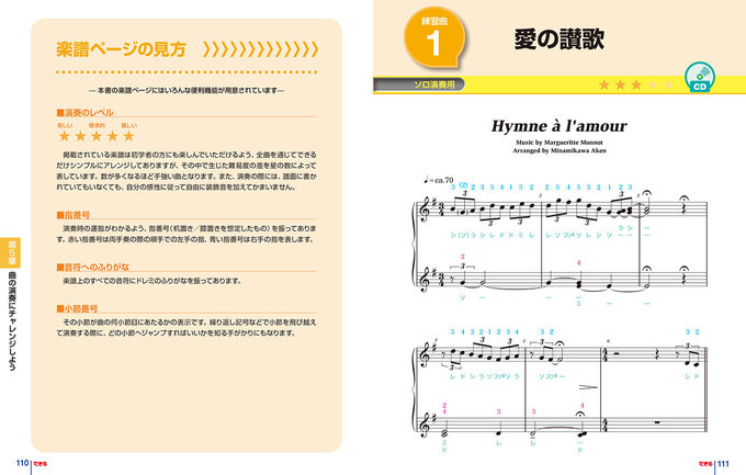 特別付録CDには各練習曲の模範演奏や、デュオ曲用のパート個別トラック、アンサンブル曲用のカラオケ伴奏トラックなどが収録されています。